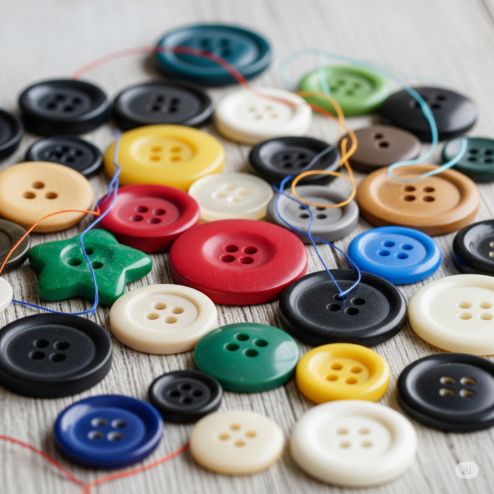 Kancing dengan bentuk unik seperti bunga, hewan, atau bentuk geometris. Berfungsi sebagai elemen dekoratif sekaligus fungsional, populer untuk pakaian anak dan fashion statement pieces.
