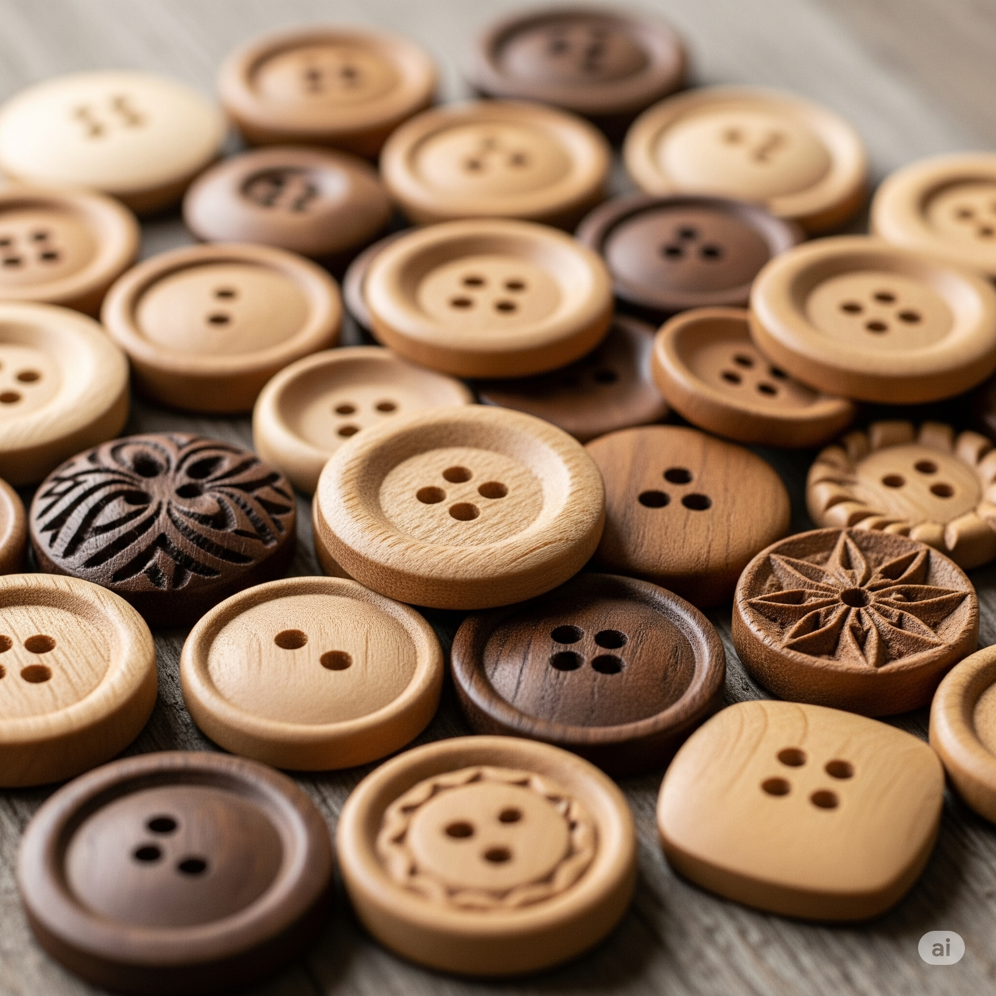 Kancing kayu memberikan nuansa natural dan hangat pada pakaian. Populer untuk cardigan, sweater, dan pakaian dengan gaya bohemian atau rustic. Setiap kancing kayu memiliki serat dan warna yang unik.