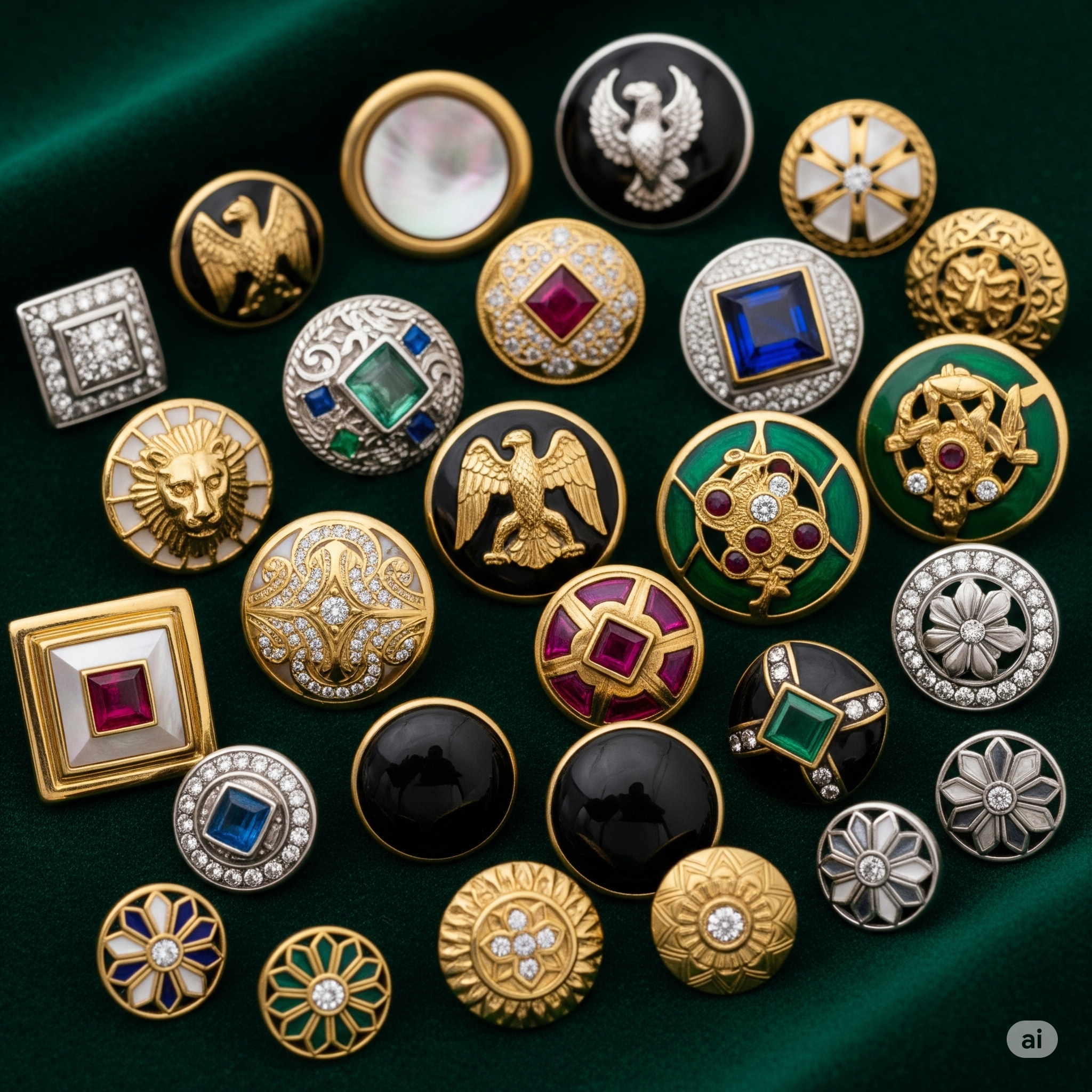 Kancing ini memberikan efek berkilau dan glamour pada pakaian. Tersedia dalam berbagai warna dan bentuk, dari yang sederhana hingga yang sangat dekoratif dengan cutting yang rumit.