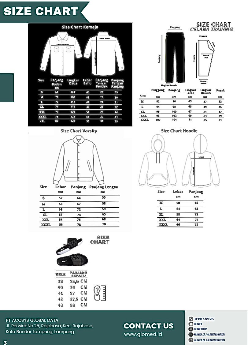 Setiap konveksi atau brand bisa memiliki standar ukuran berbeda. Pastikan kamu membuat size chart sendiri yang konsisten. Contoh format: