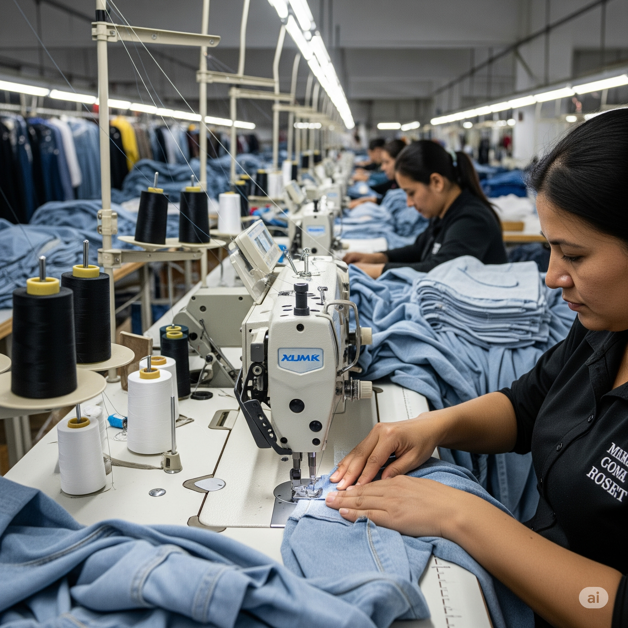 3) Proses penjahitan: Dilakukan oleh tenaga jahit menggunakan berbagai mesin sesuai kebutuhan. Mesin obras, overdeck, dan jarum satu adalah yang paling umum.
